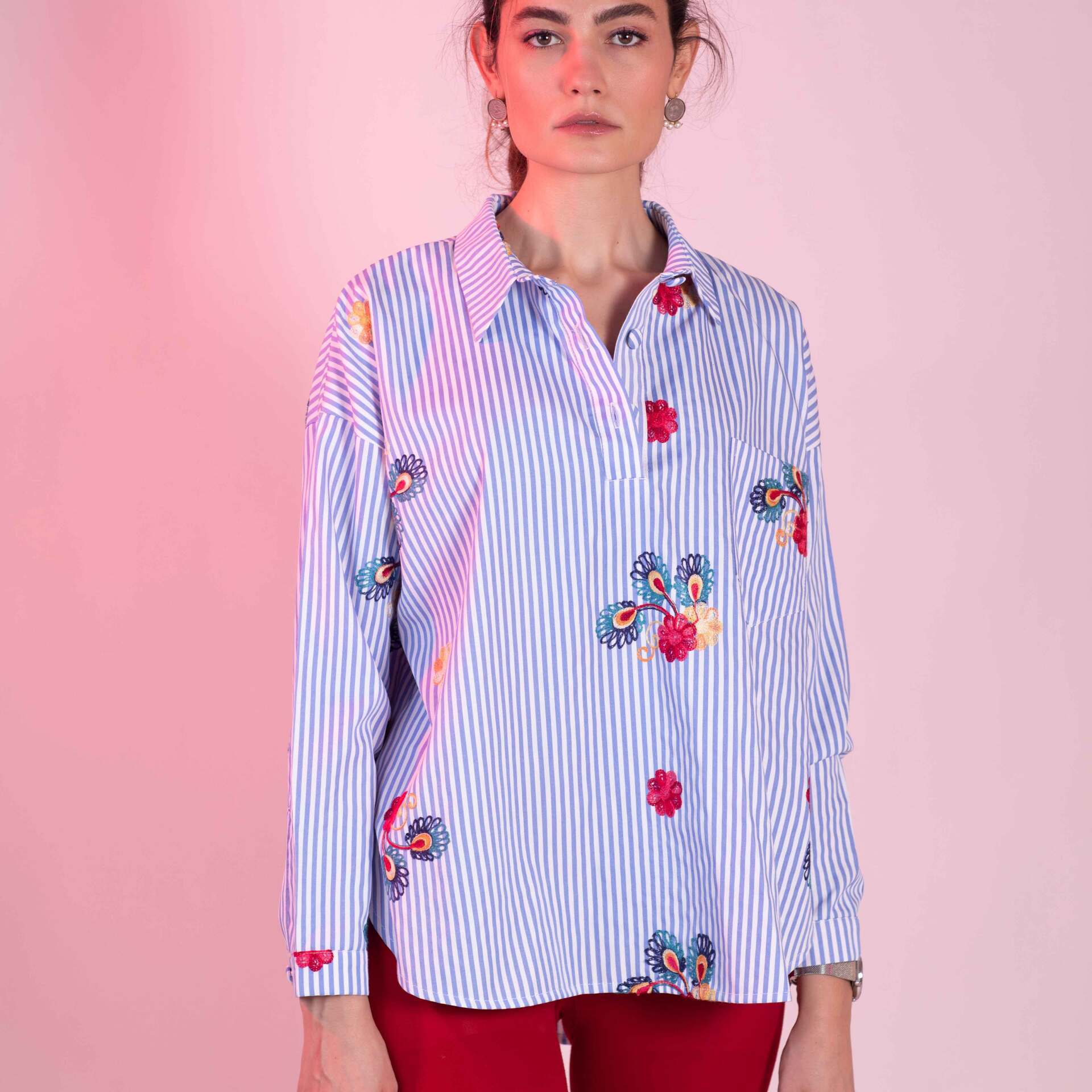 شومیز یقه مردانه خامه دوزی شده فیری سایز کد 334167